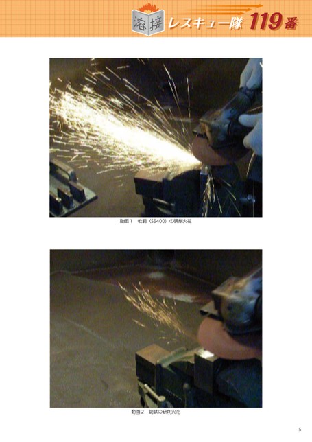 レスキュー隊119番動画1軟鋼(SS400)の研削火花動画2鋳鉄の研削火花5