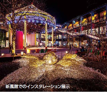 「東京中央郵便局(現KITTE)」など、多くのモダニズム建築の名作で知られる建築家・吉田鉄郎。吉田の代表作としては、大正15年(1926年)に竣工した「旧京都中央電話局」もよく知られている。この旧電話局の外観をそのままに“伝統と革新の融合”を体現する商業施設とし生まれ変わったのが「新風館」だ。新風館は2016年に一時閉館し、再開発の後2020年にリニューアルオープンした。この一時閉館の直前、新風館の中庭にはアーティスト・西紗苗さんによるインスタレーションが披露された。直径およそ6m、総重量300kgのワイヤーフラワーオブジェクトである。新風館に捧げられた巨大な花は「新風館」に関わってきた人々がしばしの別れを惜しみ、感謝を伝え、再会を誓いあう場のシンボルとなったのだ。