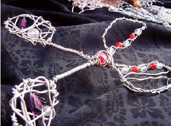 西さんがアクセサリー作りを始めた1990年代後半から現在に至るまでに、何度かの「ハンドメイドブーム」を経て、アクセサリー用途として数多くのパーツが開発生産されるようになった。今や、手芸店で買ったパーツをパズルのように組み立てるだけで、誰にでも手軽にアクセサリー作りを体験できる。だが西さんが作り始めた当初、手元にあったのはごく限られた種類のパーツと布や糸、金属線、樹脂といった素材だけ。作品づくりは、毎回ゼロからの手探りだった。だが、そこにこそ創造の面白さもあった。