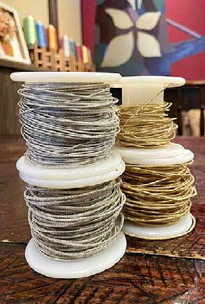 そこで西さんは、当時、京都市からの支援の一環としてnaecloseを担当してくれていた事業コンサルタントに相談してみることにした。コンサルタントの先生が見せてくれたのは、美しい金色の糸巻だった。さらに、これで何か作ってくれる?といって手元に残された糸を贅沢に使い、数点ほど作品を作ったという。実は、これが純金製の高価な金糸で、着物や帯に使われる高級素材だということは後々知らされたことだ。価格を聞いて西さんは震え上がったが、この時作った作品は、そのまま産地である京都府城陽市の商工会議所に納品されることになった。