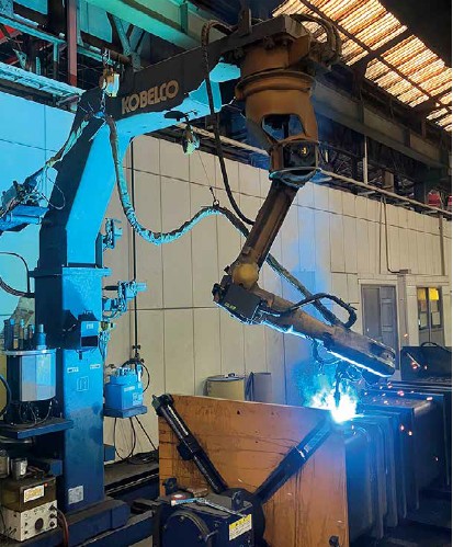 昔から当社では自動化を進めており、-VXの頃から神戸製鋼さんの溶接ロボットを使用してきました。現在は柱大組立、コア連結、天吊マルチワーク、石松™ の各種溶接ロボットを保有しています。特に天吊マルチはその時の仕事量や工程の流れに伴って、コア溶接と仕口溶接を使い分けできる点が大きな魅力と感じています。ロボット用の溶接ワイヤは[F]MG-56R(N)を使用。ロボット、ワイヤとも神戸製鋼製という安心感があり、人手不足が進行する今、ロボットがなければ、仕事が立ち行かないところまで来ていると実感しています。