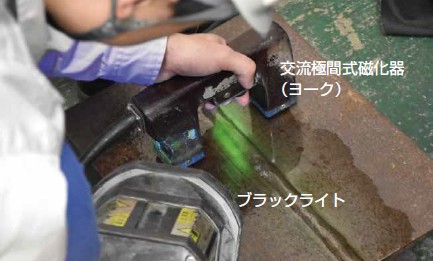 磁粉探傷試験は対象とする検体や検出したいきずに応じてさまざまな磁化方法がありますが、当社では溶接試験材の探傷に最も採用されている可搬型の極間法だけを実施しています。ただし、試験員は経験豊富ですので、極間法による磁粉探傷試験の実施の際には、ぜひご相談・ご用命いただけると幸いです。
