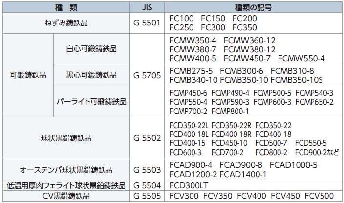 表1に、鋳鉄の種類を示します。