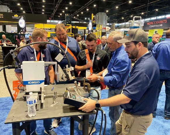 KWAIは、米州向けにステンレスフラックス入りワイヤと軟鋼フラックス入りワイヤを中心とした溶接材料、および溶接システムの輸入販売を行っている会社です。今回のFABTECHでは、溶接材料の展示として、鉄骨向けおよびカーボンニュートラル対応向けでの新商品(鉄骨向け: MX-A70C6SA、液化アンモニアタンク向け: DW-50EA、液化水素タンク向け DW-316L-EC)、また、溶接システムの展示として、小型可搬型溶接ロボット( PORTABLE)2台の操作体験や、KWAI初となる3Dロボグラムによる鉄骨溶接ロボットシステムの展示を実施し、多くの来場者の関心を集め、米国におけるKWAIの知名度向上とともに、取扱商品を広く業界の関係者へ印象付けることができたのではないかと思います。